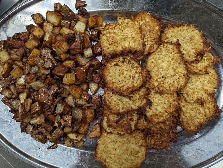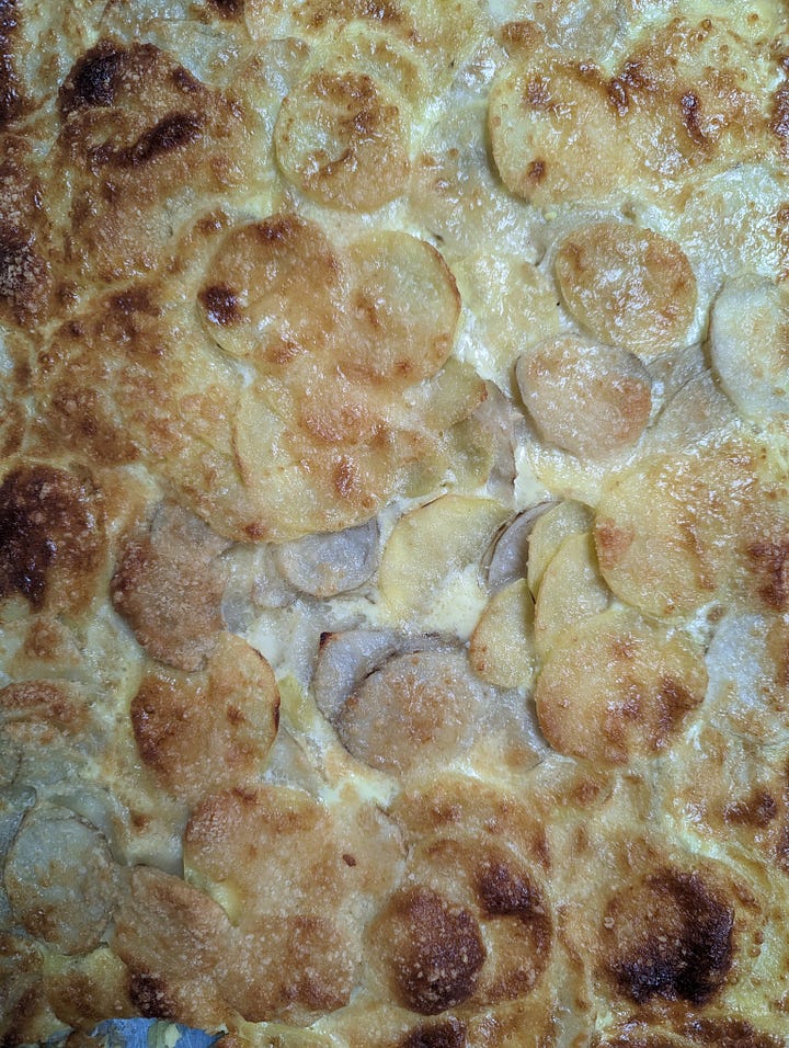 My cooking partner for the day and I fried potato pancakes (very similar to hashbrowns), roasted potatoes, and scalloped potatoes.